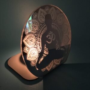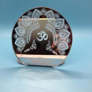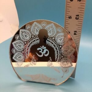 Reflective OM Engraved Acrylic Tea Light: Handcrafted Meditation Ambiance illuminate your sacred space with our handcrafted tea light, intricately engraved with the universal OM symbol on mirrored acrylic. Experience a radiant glow that fosters tranquility, reflection, and spiritual connection. Perfect for meditation sessions, relaxation, or adding a touch of enlightenment to any room.