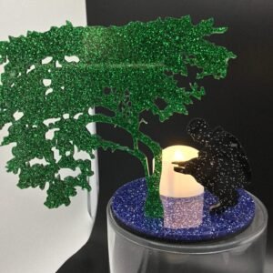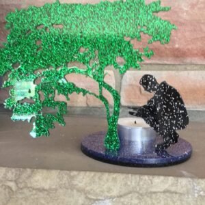 Illuminate your space with the Starry Night Solace Tea Light Holder. Crafted from glittered acrylic, this unique piece features a man seeking warmth by a flickering flame, symbolizing resilience and comfort. Ideal for those who cherish…