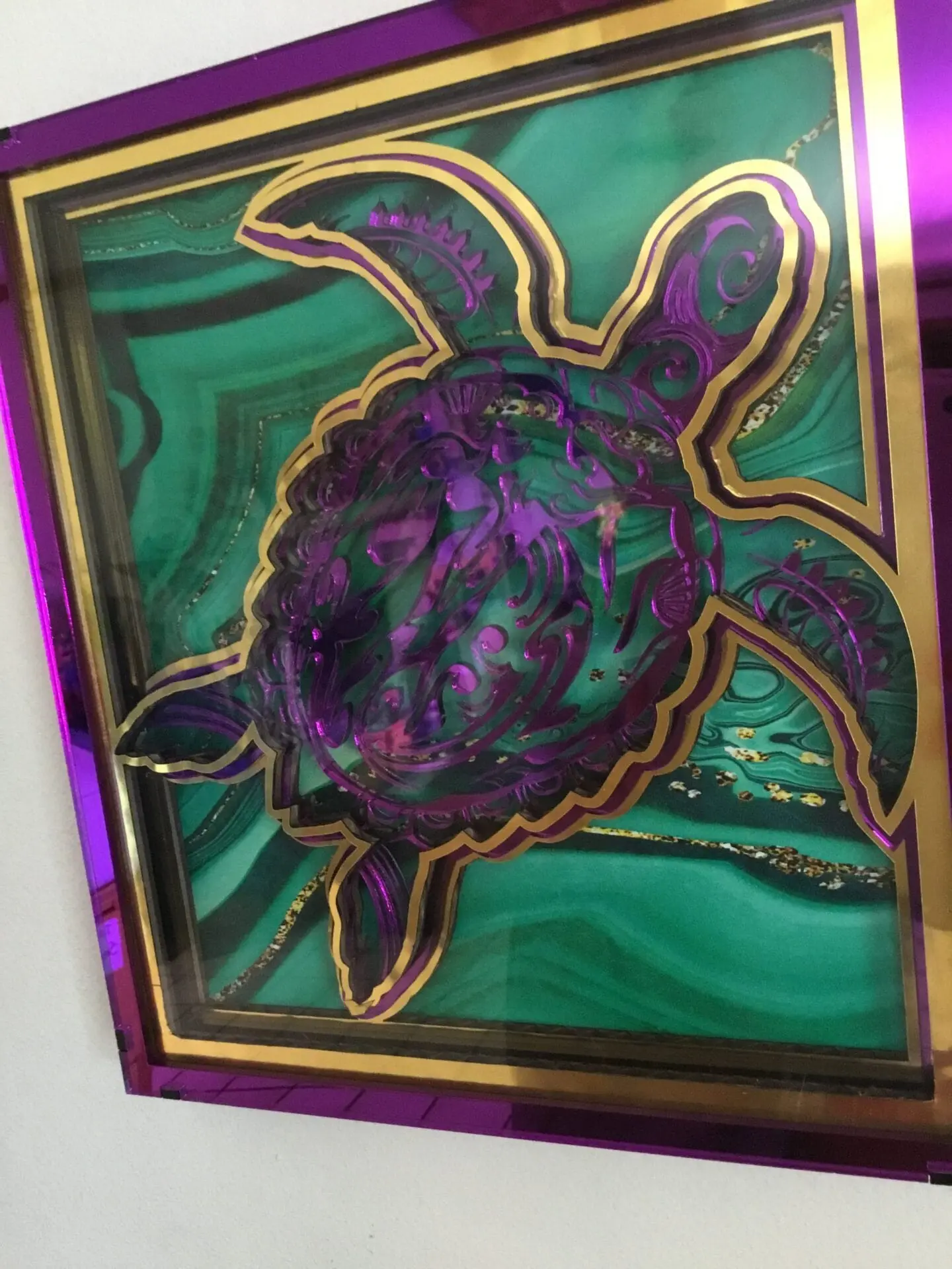 Māori Wall art for the Wall- Polynesian Turtle- Mirrored acrylic-Sea creature-Patience for the Cosmic Turtle